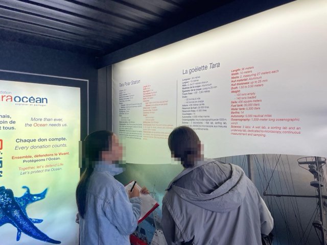 Lors de cette première journée, les élèves ont découvert l’exposition de Yun Faillard, consacrée à la prochaine dérive arctique de Tara Polar Station, avant d’échanger avec François, marin à bord de Tara depuis 15 ans. Il leur a raconté la vie sur la goélette, les missions scientifiques et les défis du métier.
